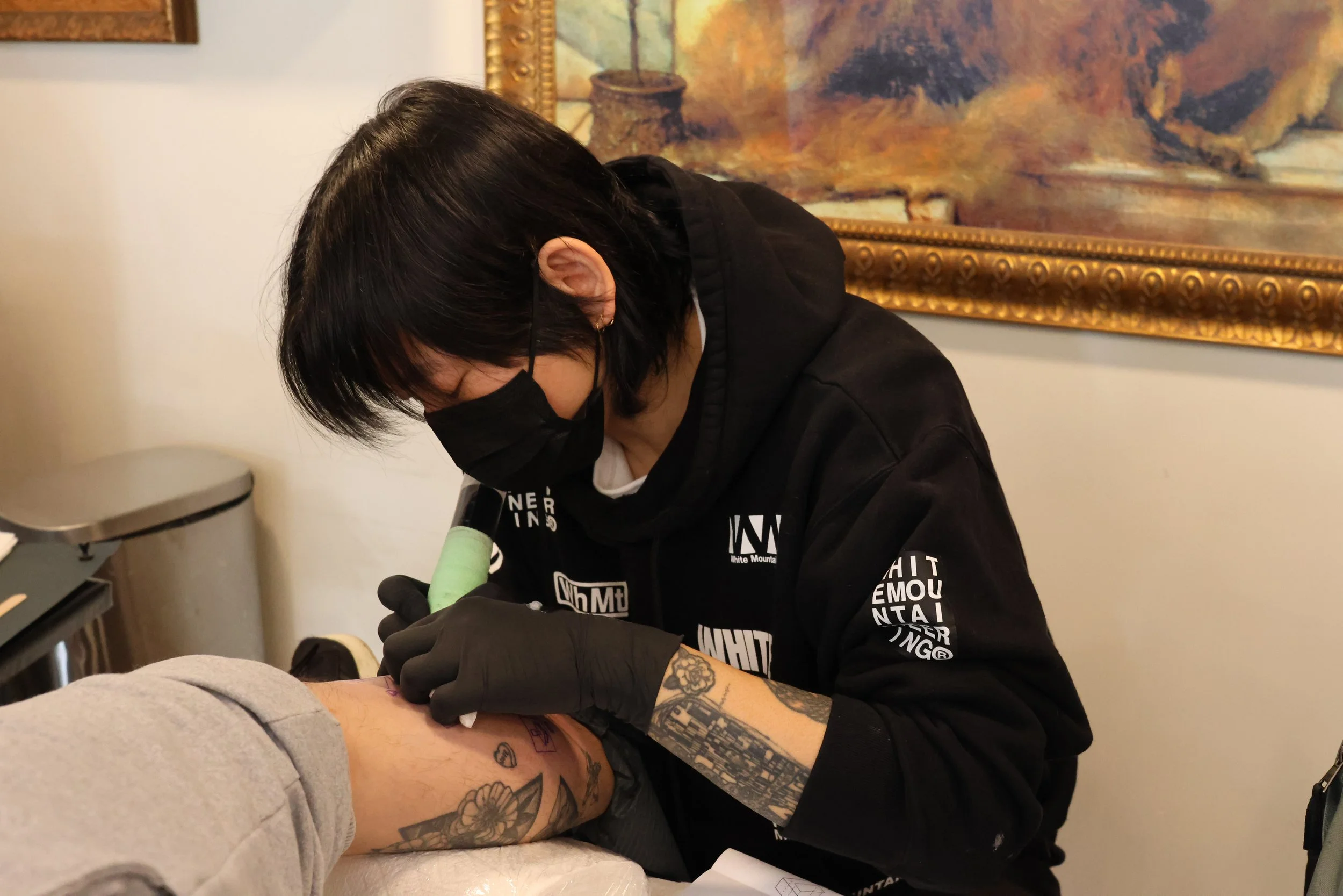 Hide specializes in fine line linear work and anime style tattoos. His work indulges in subjects from minimalist and intricate line oriented designs.